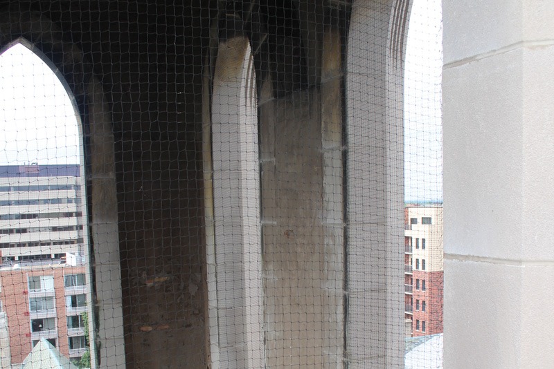 Figure 2: Damaged netting on this building facade provided inadvertent support birds and other wildlife to build nests on rusticated joints.
