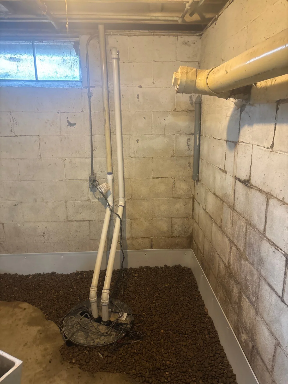 To resolve the issue, the team installed a professional-grade interior drainage system paired with a sump pump and battery backup—a proven, long-term waterproofing approach for homes in Hubbard.