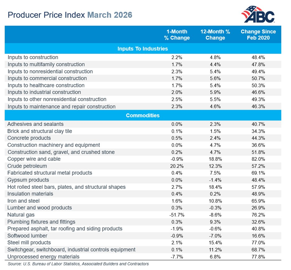“The staggering jump in fuel costs only reflects prices as of mid-March,” said Ken Simonson, AGC chief economist. “Diesel fuel prices have continued to rise sharply since then, while the destruction of aluminum facilities and blockage of ship movements due to the Middle East war is driving costs still higher.”